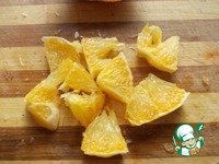 Апельсин почистить и порезать маленькими дольками. |