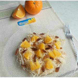 Сверху выкладываем отжатый от воды изюм и апельсин. Подаем к столу. Приятного аппетита! |