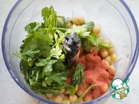 Нут заранее замочить, затем отварить до готовности. Добавить специи и зелень и перебить в кашу. |
