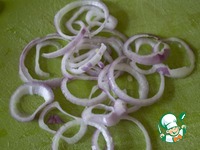 Лук нарезать кольцами/полукольцами, замариновать в уксусе (1:10) на несколько минут. |