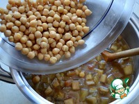 Консервированный нут промыть и добавить в кастрюлю. Можно, конечно, использовать предварительно отваренный нут. |