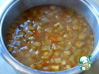 Влить горячий овощной бульон и варить все на среднем огне еще минут 7. Количество жидкости регулируйте по своему вкусу! Может потребоваться и чуть больше бульона... |