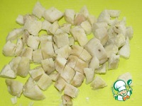 Грибы нарезать небольшими кусочками. Если шампиньоны мелкие, то можно их не резать. |