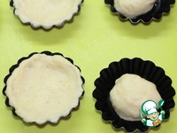 Тесто разделить на 5-6 частей. Кусочки теста положить в формочку. Распределить по всей поверхности формочки. |