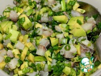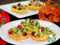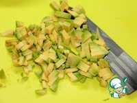 Пока корзиночки выпекались, сделать салат. Авокадо почистить, извлечь косточку, мякоть порезать мелкими кусочками или кубиками. |