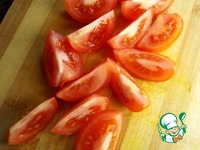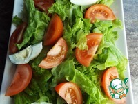 На листья салата выложить помидоры и яйцо, разрезанное на четыре части. |