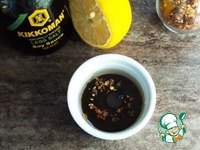 Для заправки смешать масло, соевый соус, перец и лимонный сок. |