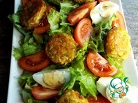 Описание: С наступлением весны наш организм начинает требовать больше овощей и зелени. Сытные гарниры отходят на второй план и мы все чаще готовим различные салаты. Я люблю добавлять большое количество свежего салата и стараюсь дополнить салат чем-то интересным, будь то кусочки курицы или печени, тертый сыр или яйцо. Недавно в журнале выглядела салат с нежными шариками из кабачка. Сразу захотела попробовать такой вариант. Оказалось, на сайте есть салат с кабачковыми шариками. Я все же добавлю и свой вариант, по составу они различны. А вы не сомневайтесь и готовьте. Салат очень вкусный и сытный.