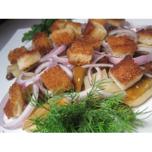 Описание: Простой, вкусный, салат с чесночными сухариками и другими ингредиентами, которые прекрасно сочетаются и дополняют друг друга. Поститесь и хрустите на здоровье.