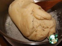 Вернуть на огонь и мешать постоянно, пока тесто не будет одним куском отставать от кастрюли (обязательно с толстым дном)при повороте лопаткой. дать тесту остыть, чтобы с ним было можно работать. |