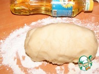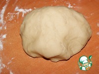 Поместить тесто на стол, присыпанным частью оставшейся муки, месить пока не вберет в себя всю муку. |