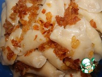 Это тесто очень нежное, лёгкое в работе и лепить из него вареники одно удовольствие. Отварить вареники в кипящей соленой воде с несколькими горошинами душистого перца. Варятся они очень быстро. |