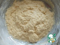 Добавить 2.5 ст муки ( у меня стакан 200 мл.) и перемешать. Накрыть полотенцем и отправить в теплое место. |
