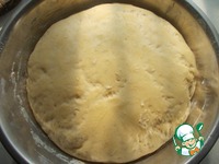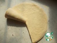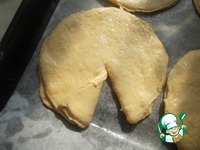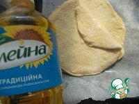 Выкладываем его на противень смазанный маслом. Сверху смазываем еще маслом и присыпаем немного сахаром. Накрываем таким же кружком теста, снова смазываем маслом и присыпаем сахаром. |