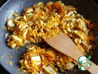 Пожарить лук, морковь и сырые грибы (у меня шампиньоны), посолить, поперчить. |