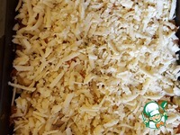 Выложить остывшую зажарку на рубу в форму. Обсыпать желатином. |