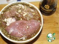 Мясо промываем, обсушиваем бумажным полотенцем и укладываем в маринад. Закрываем крышкой и убираем на 24 часа в холодильник. |