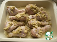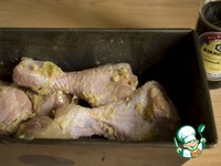 Положить в маринад нашу курочку, она должна быть покрыта им со всех сторон. Завернуть в пищевую пленку и оставить на пол часа. |