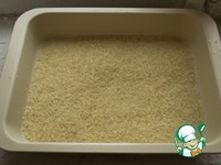 Замаринованную курицу выложить на рис, соус у Вас застынет, поэтому обмажьте застывшим соусом курицу. |