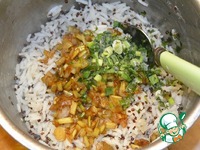 Добавить к рису тушенные овощи и рубленный зеленый лук. |