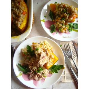 Описание: Каши с тыквой вкусны! Перловая каша с овощами, запечённая в тыквенном горшке, замечательное, сытное и очень полезное блюдо. В принципе здесь и добавлять-то бы ничего и не нужно, но если не могут без мяса, то можно просто добавить отварную куриную грудку и присыпать горячую ещё кашу сыром.