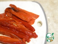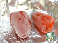 Выкладываем перец на фольгу, запекаем в духовке, до поджаристых бочков, несколько раз переворачивая. Затем внимаем, закраваем фольгой или полиэтиленом и остужаем. |