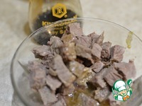 Мясо режем кубиками и заливаем 2/3 готового маринада, оставляем мариноваться 1 ч-1,5 ч. |