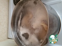 Когда мясо закипит, уменьшаем мощность и терпеливо снимаем пенку))) |