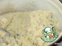 Картофель почистить и сварить в подсоленной воде. Затем из сваренного картофеля приготовить пюре. Добавить яйца, разрыхлитель и муку. Посолить по вкусу. Перемешать и оставить остывать. |