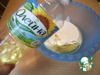 В миске смешать жидкие компоненты: кокосовое молоко, растительное масло ТМ "Олейна" и сок лимона. |