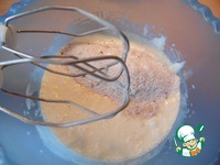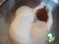В другой миске смешать просеянную с разрыхлителем муку, какао и сахар. |