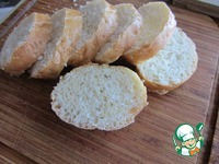 Пришло время заняться не постной добавкой! Не обязательно нарезать именно 7 ломтиков багета, можете количество регулировать по своему желанию. |