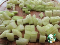 Стебель сельдерея разрезать вдоль и нарезать. |