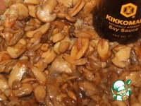 Мелко нарезанные лук и чеснок слегка потушить 2-3 мин., добавить грибы и тушить еще минут 5-7. Добавить соевый соус. Перемешать. Остудить и добавив белок опять перемешать. |