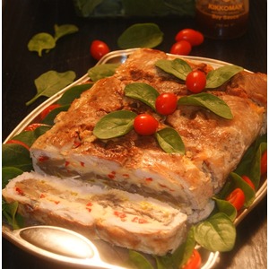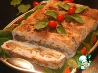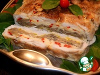 Описание: Сочный, вкусный и очень ароматный пирог, как то террином не смогла его "обозвать", где "тестом" служит куриное филе, а начинка из грибов и 2-х видов перца. Прекрасно подходит для закуски, а так же можно сервировать как горячее блюдо.