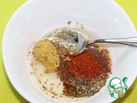 Смешать все специи, добавить горчицу, масло, хорошенько перемешать. |
