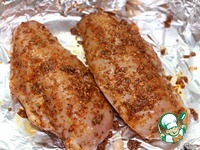 После того, как мясо полежало в соляном растворе 1 час, вынуть его, обсушить, и намазать пряной смесью. Запечь в духовке 30 минут при 180 градусах. |
