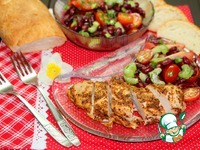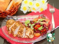 Описание: Очень вкусный и яркий салат, как по виду, так и по вкусовым ощущениям. Чем дольше стоит салат, тем вкуснее он становится, тем ярче и насыщеннее его вкус. А для того, кто пост не держит, ароматная куриная грудка запеченная в специях, станет приятным дополнением к салату.
