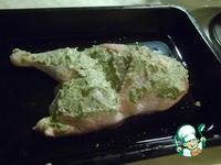 Укрываем полностью нашу курицу масляной шубкой. У меня шубки хватило полностью на полутушку... |