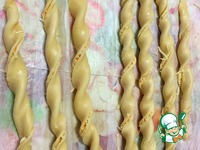 Слегка смазать получившиеся палочки яйцом и присыпать специями (например, розмарином) и кунжутом и отправить в заранее разогретую духовку примерно ан 20 минут. |