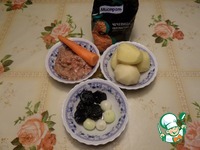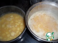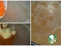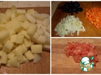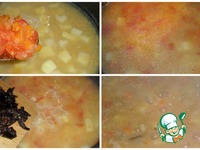 В постный вариант супа добавляем половину приготовленной массы из обжаренных овощей и нарезанный чернослив. Доводим до кипения и снимаем кастрюлю с огня. |