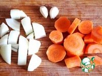 Лук, морковь и чеснок почистить, помыть. Лук и морковь крупно нарезать. |