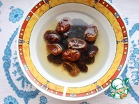 Финики и чернослив залить кипятком и дать постоять 15-20 минут, воду слить. |