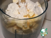 Тесто: Твердое, хорошо охлажденное масло нарезать кусочками. В чашу блендера поместить чуть больше половины муки, сверху масло, соль, сахар и остальную муку. |