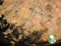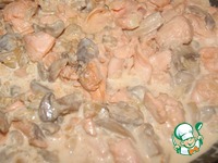 Добавить к грибам рыбу и залить сливками (сметаной), перемешать и тушить до полного загустения соуса. При необходимости подсолить. |