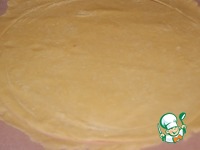 На листе пекарской бумаги раскатать тесто в круг диаметром 36 см. Обрезать края. Из обрезков раскатать небольшую галету. Поместить раскатанное тесто прямо на бумаге в холодильник на 15 минут. |