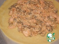 Отступив от края 5 см, выстелить на тесто начинку. Не забудьте оставить немного начинки для маленькой галеты. |