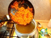 Пришла пора отправлять лук в бульон, в который я уже вернул всё мясо. |