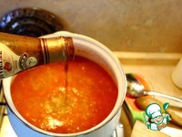 Добавляю ткемали. Можно сделать свой из слив, а можно взять и готовый, только хороший. Хорошенько перемешаю, пробую. Добавлением сахара ловлю баланс кислого и сладкого. |