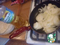 Лук нарезать колечками и обжарить на растительном масле до румяного цвета. |